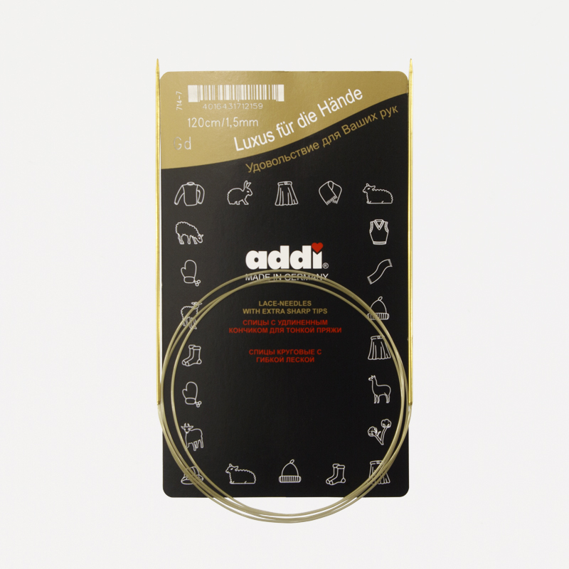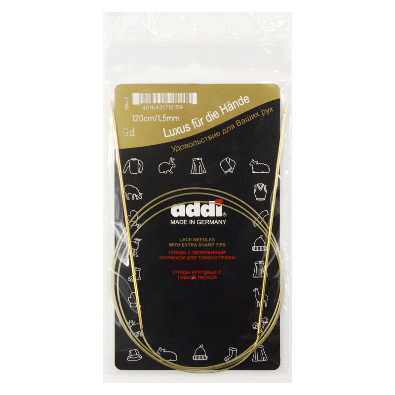 Спицы для вязания Addi круговые позолоченные с удлиненным кончиком, 1,5 мм, 120 см